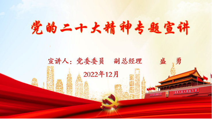会上,盛勇同志以《学习二十大·书写新篇章》为题讲授党课,重点宣讲了党的二十大的重大意义、二十大报告的逻辑结构与主要精神,并结合支部实际工作,提出三点要求:一是要深刻领会准确把握党的二十大精神实质,准确把握党的二十大提出的一系列新观点、新论断、新思想、新战略、新要求,坚定不移地沿着习近平总书记指引的方向奋勇前进,真正做到学深悟透。二是要深入学习贯彻党的二十大精神,从全面学习、全面把握、全面落实上下功夫,要对各项目标和任务进行细化,有针对性地拿出落实的具体方案,制定明确的时间表、施工图,扎扎实实向前推进。三是要把党的二十大战略部署转化为集团、部门的工作任务,抓好岁末年初冲刺攻坚,谋划好明年的各项工作,做到既为一域增光、又为全局添彩。